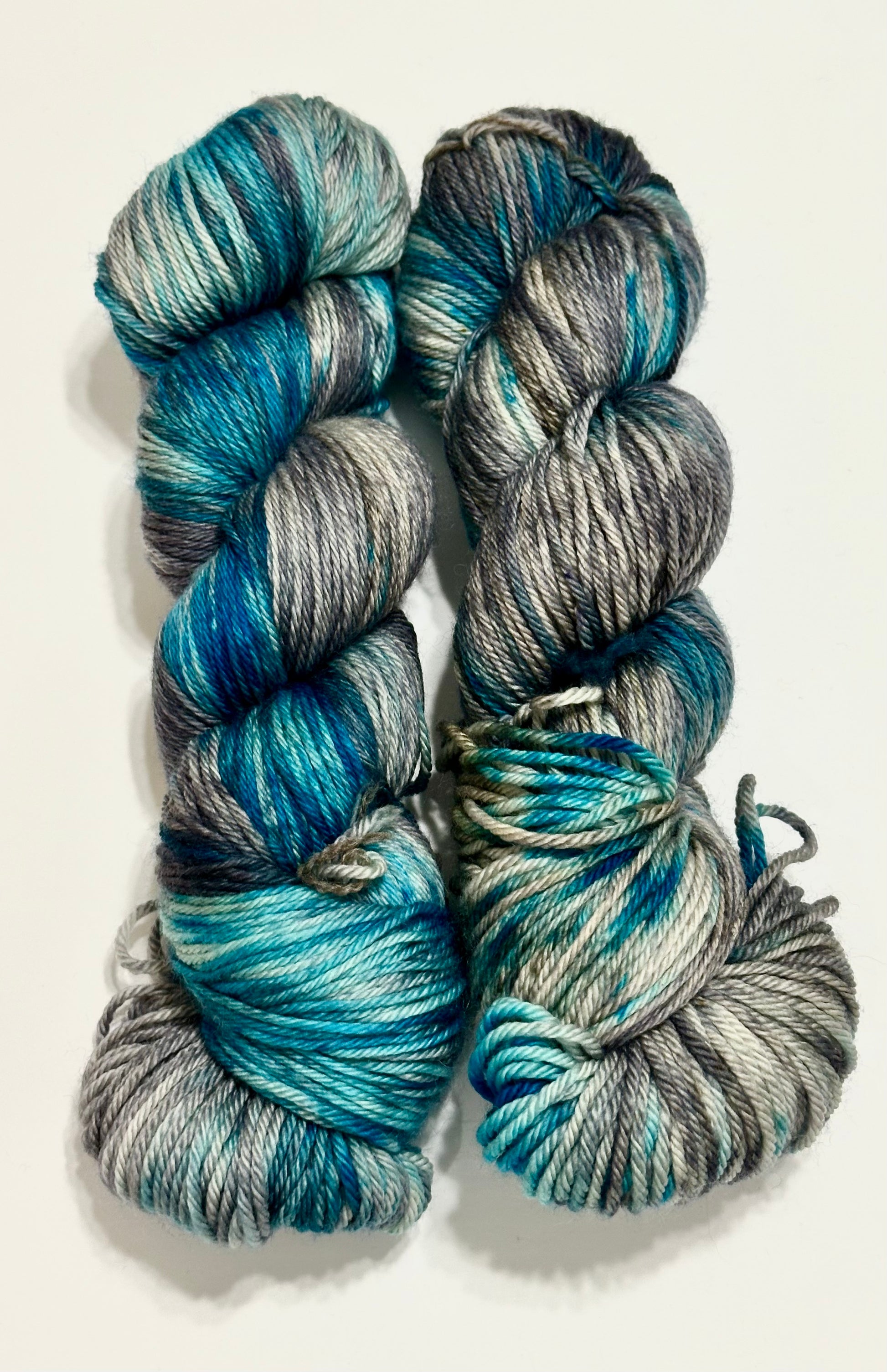Step into a world of mystery and magic with "Beyond the Wall," a stunning tonal yarn inspired by the vast, untamed landscapes of distant realms. This hand-dyed yarn evokes the mood of icy wilderness and ancient secrets, featuring deep, shifting tones of frosty blues, shadowy grays, and whispers of steel that transport you to the edge of the unknown.