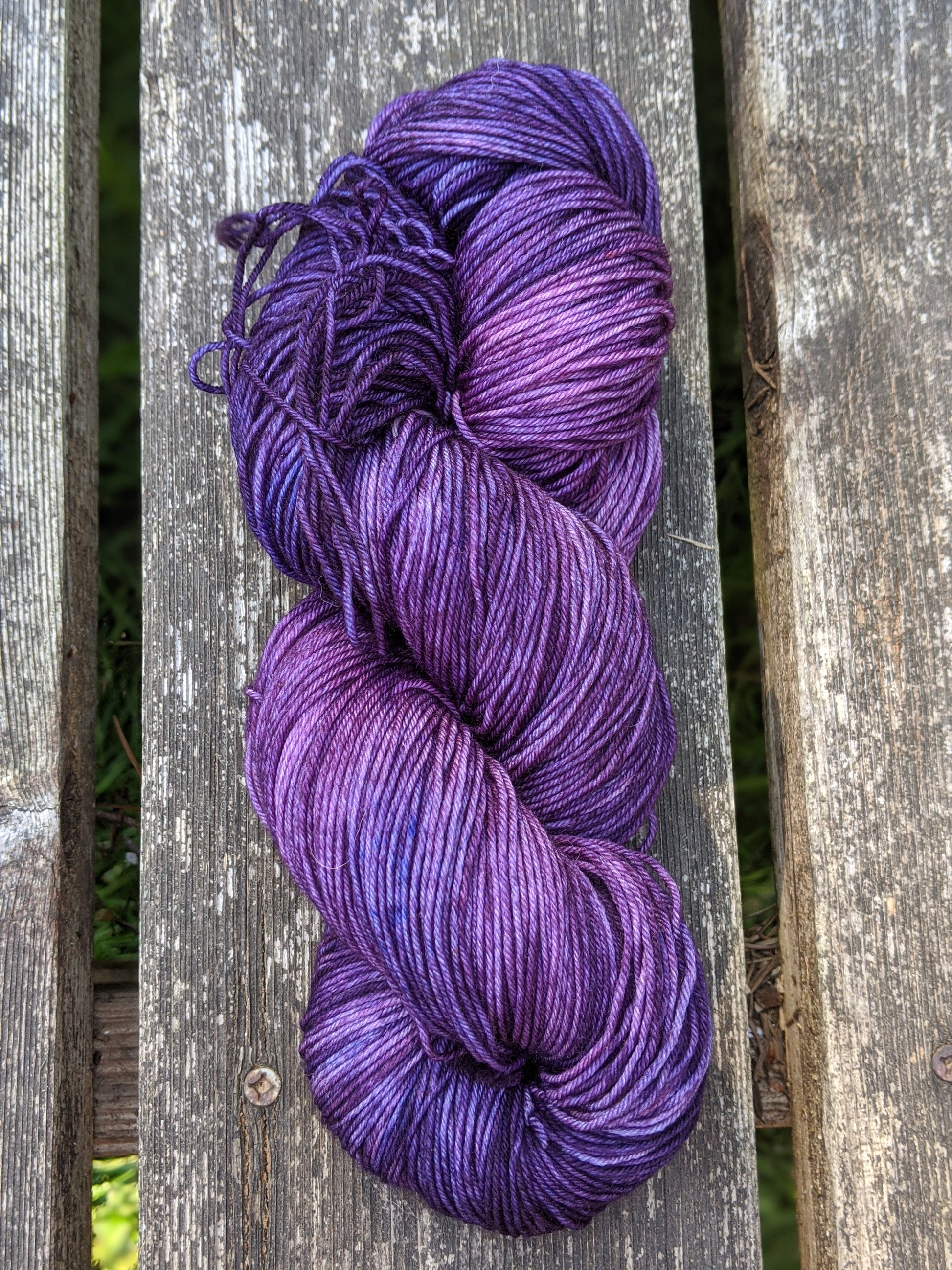 Step into the shadows of legend with Morgana, a variegated yarn from Fandoms and Fibers. Hand-dyed in a range of deep plums, regal violets, and mystical lavenders, this colorway evokes power, elegance, and the whisper of enchantment.